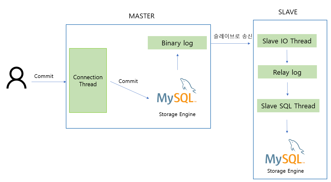 IO Thread → binlog를 받아서 relay log에 sequential write