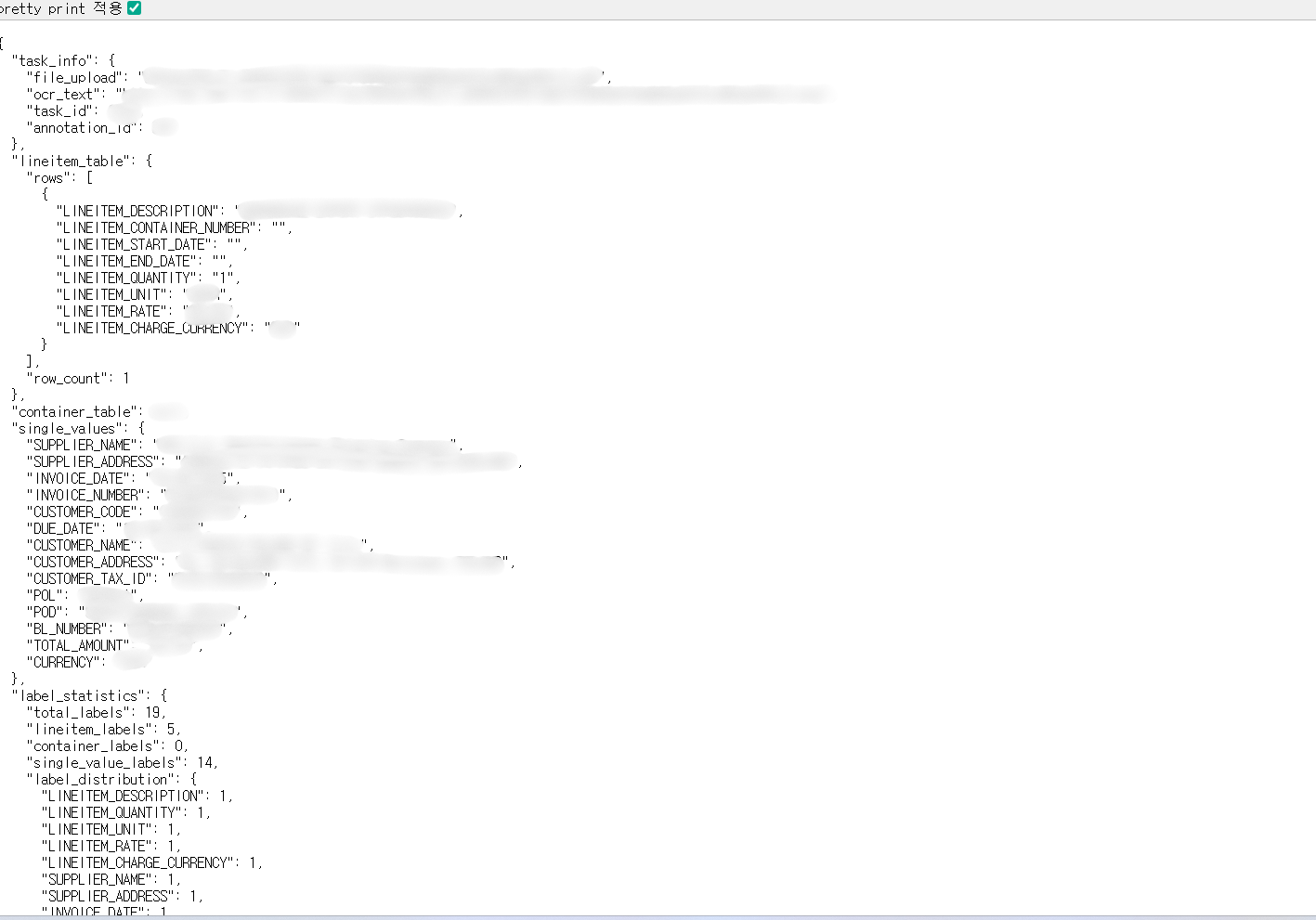Document AI 추출 결과 상세