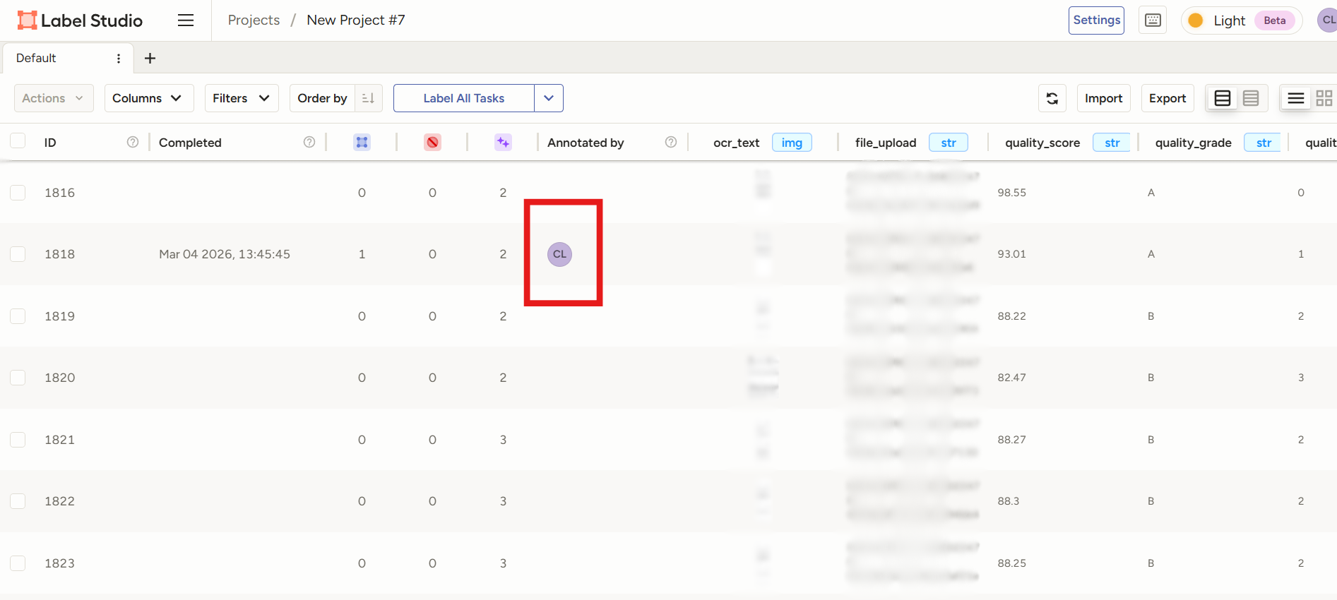 PDF → Label Studio → EasyOCR Backend → 텍스트/박스 추출, API 토큰 적용