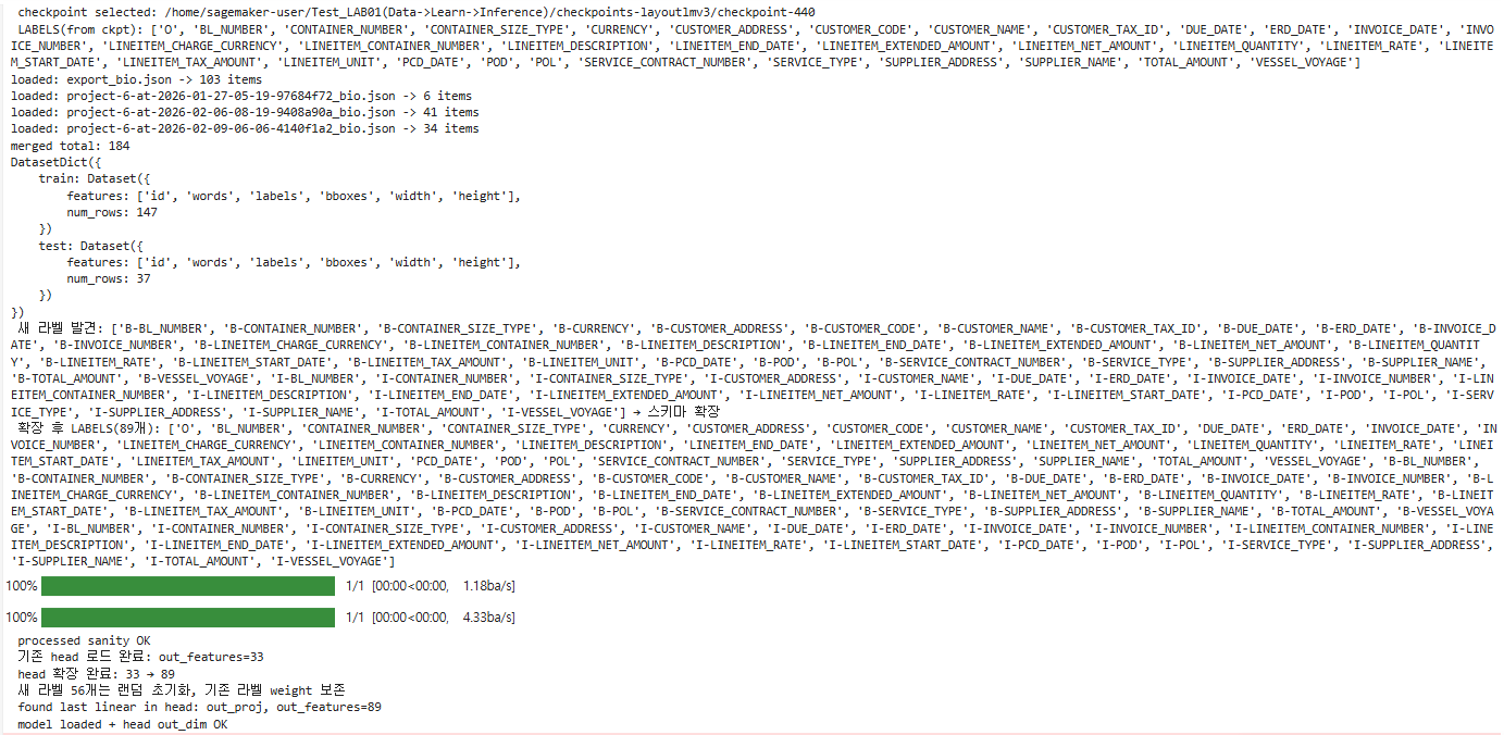 B-I 라벨(B-CONTAINER_NUMBER, I-CONTAINER_NUMBER 등)이 기존 checkpoint에 없으니까, 자동으로 스키마를 확장합니다.