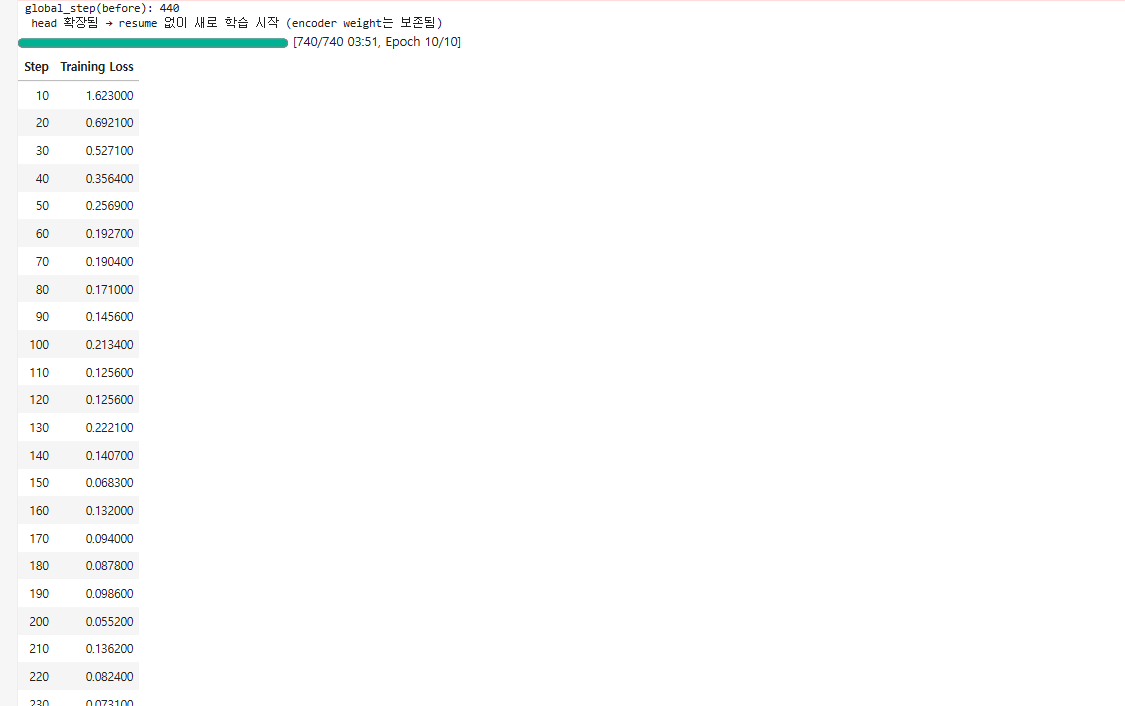8-9) 학습 실행 → Head 확장 시 Resume 비활성화